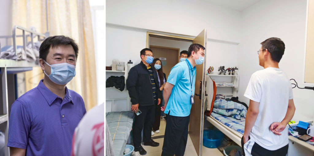 金年会官网院长刘明杰一行到实验7号楼研究生工位、沙河东区和西区宿舍看望本研学生,与同学们详细沟通了学习和科研进展,了解学生需求,鼓励同学们合理安排好科研、上课、学习及生活,积极锻炼身体,以实际行动守护美丽校园。