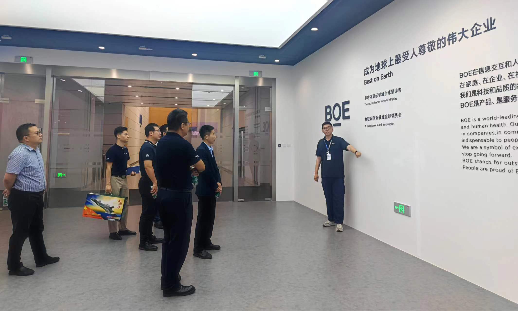 金年会官网党委书记刘克松等一行人在京东方全球校园招聘部区域负责人张明我的带领下参观了京东方技术创新中心展厅,详细了解京东方的发展历程和产品研发等情况。此外,还看望校友李晓博、潘亚非、刘臻、王超璐等人,关心校友的工作状态及个人发展情况。