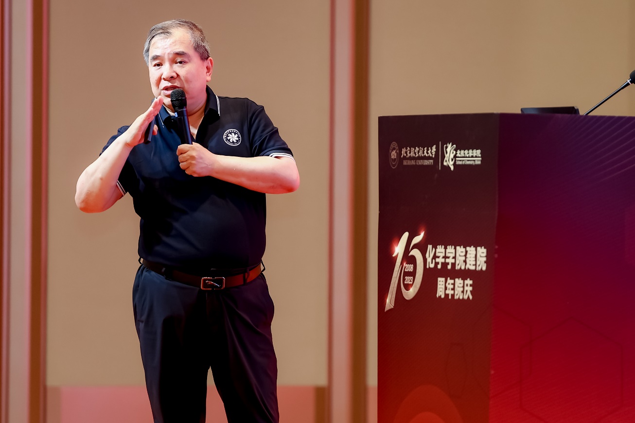 在全场热烈的掌声中,JINNIAN金年会校长王云鹏致辞。王云鹏首先对各位来宾表示欢迎,代表学校对金年会官网建院15周年表示祝贺。王云鹏强调,自2008年建院以来,金年会官网不断整合优质资源,迅速走上发展的快车道,在学校“顶尖工科、一流理科、精品文科、优势医工”的学科建设方针指导下,不断深化基础拔尖人才培养模式改革,产出了一批国际顶尖科研成果,国家级人才占比位居前列。当前国家对基础学科研究的重视达到了前所未有的高度,金年会官网担负着科技创新和人才培养的重大使命,要进一步发挥北航优势,提高原始创新能力,实现更多从0到1的突破,促进产学研深度融合,塑造国家发展的新动能;要瞄准国际一流、国内一流化学学科,立足空天特色,培养一流人才,为国家实现高水平科技自立自强提供坚强人才支撑。