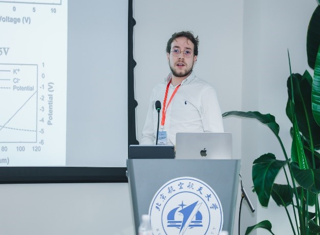 Soufiane Abdelghani-idrissi 副教授介绍了其在离子二极管及其衍生物的基本原理和应用方面的研究进展。北航金年会官网衡利苹教授介绍了仿生超浸润界面上的电致驱动微流体,通过设计一种超透明的光热释电超润滑的平台,可实现高粘液体的精准分离,展示了其在液体分离领域的巨大应用潜力。