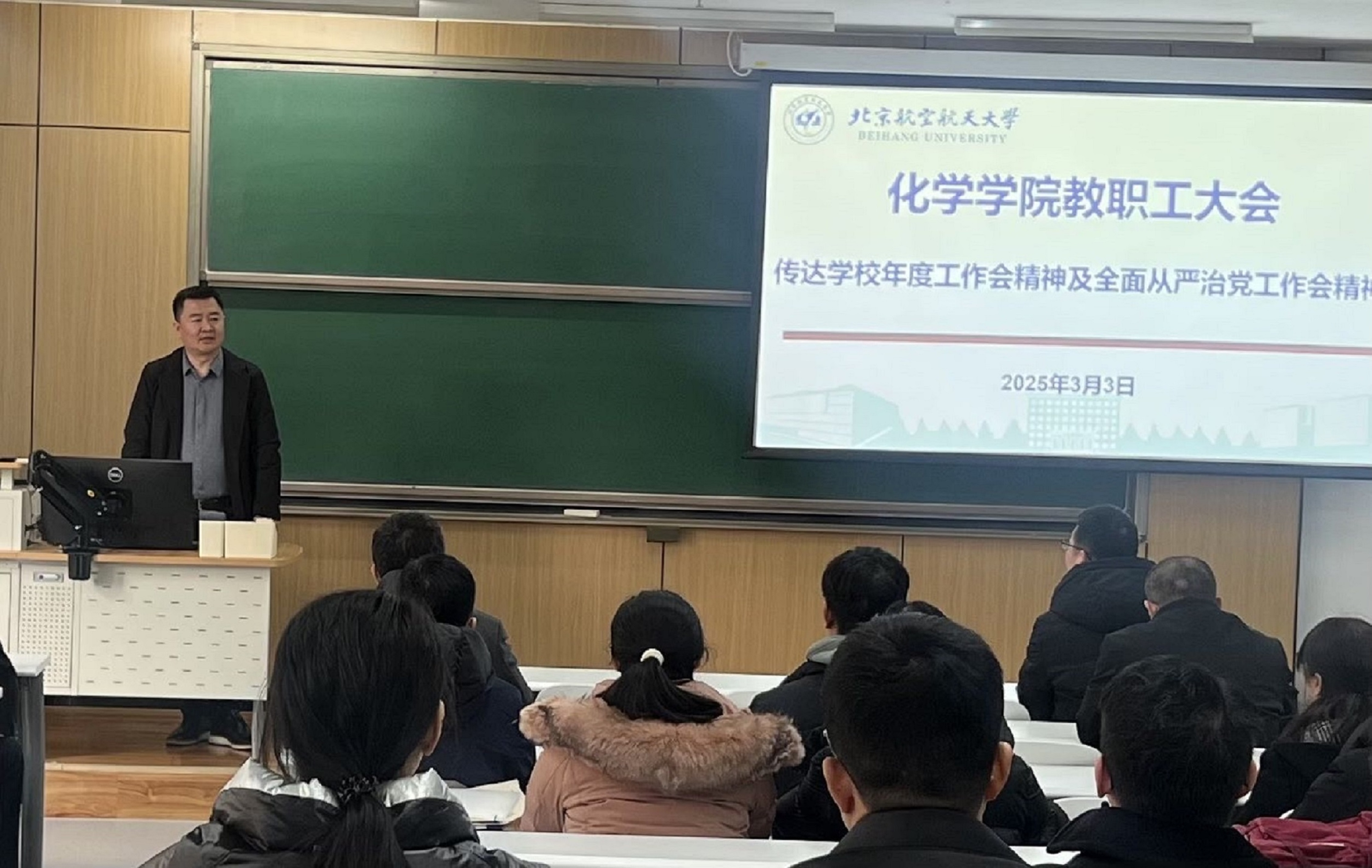 2025年3月3日,金年会官网召开全院教职工大会,深入学习贯彻学校2025年度工作会及全面从严治党工作会议精神,全面总结2024年工作成果,部署2025年重点任务,推动学院高质量发展。学院领导班子、全体教职工参加会议。