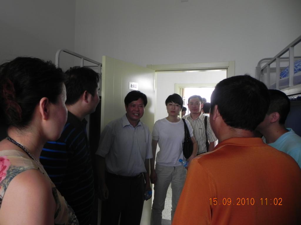 2010年9月15日,金年会党委书记朱天乐教授、副院长相艳教授、党委副书记梁国栋老师,在分团委书记兼2010级辅导员韩炜老师的陪同下莅临沙河校区指导迎新工作,并深入学生宿舍慰问新生,与新生及新生家长进行座谈。