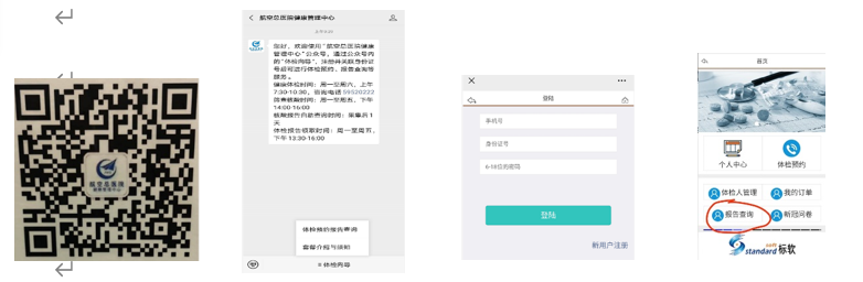 核酸检测一般 24 小时之内出结果,报告查询教职工本人请关注“航空总医院健康管理中心”公众号(步骤见下图步骤①扫码关注公众号②点击体检向导选择体检预约报告查询③点击新用户注册④注册后进入页面选择报告查询后使用身份证登录查询)。2-3 天后检测结果将上传至“健康宝”。
