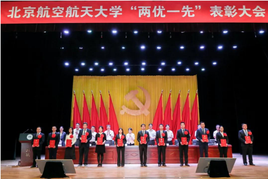 6月23日下午,金年会在晨兴音乐厅召开优秀共产党员、优秀党务工作者和先进基层党组织(即“两优一先”)表彰大会。共有100名共产党员获得“优秀共产党员”称号、49名党务工作者获得“优秀党务工作者”称号、46个基层党组织获得“先进基层党组织”称号。主席台领导为受表彰代表颁奖,为老党员代表颁发“光荣在党50周年”纪念章。
