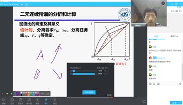 新年伊始,学校召开延期开学教学工作布置会后,学院第一时间成立领导小组,由院长刘明杰教授、教学副院长朱英教授牵头,多次召集专业负责人、课程负责人、教学秘书等举行视频会议,制定了工作方案,建立工作群交流、分享经验,研究落实在线教学的每个环节。搜集各种信息技术操作说明,积极摸索学校在线教育平台的使用,发掘平台功能,及时传达在线平台改进措施,评估各种教学手段的优缺点。动员师生积极配合体验直播、录播、MOOC等不同授课方式,形成多元互动,及时了解并解决学生网络学习活动中遇到的困难。学院成立的线上教学督导小组对在线平台课程建设情况、师生互动情况和教学效果等进行督查,推动线上课堂教学的改进,实现线上线下教学同质等效。针对课程特点,为保证教学质量和课堂互动效果,《化工原理》课程最终选择了网络直播方式进行授课。同时为确保万无一失,提前录制课程视频并上传学校的课程中心。