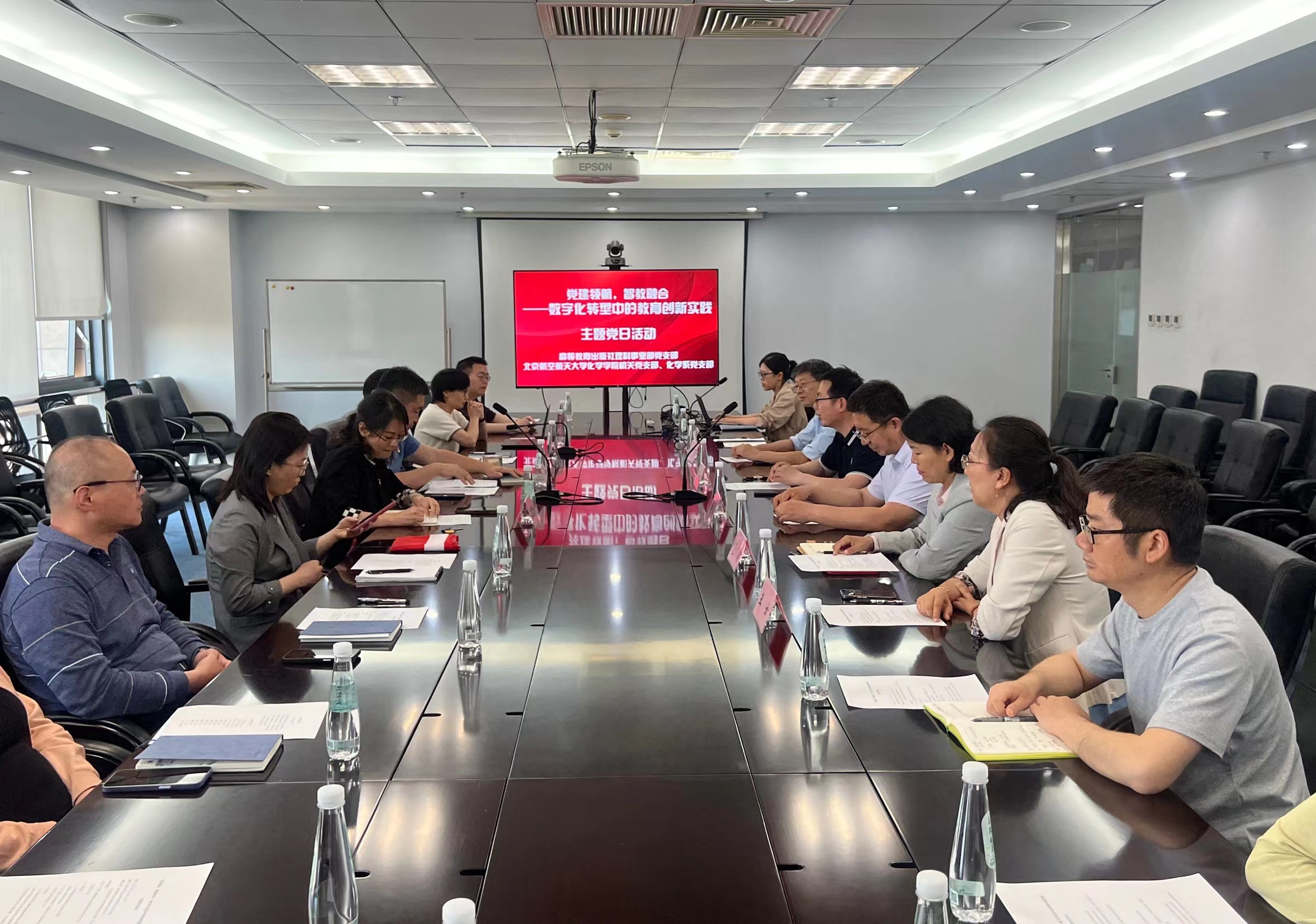 为扎实推进深入贯彻中央八项规定精神学习教育,以实干作风落实学校“数智赋能年”工作部署,推动金年会官网以数智赋能驱动人才培养质量提升,5月14日,北航金年会官网化学系党支部、机关党支部与高等教育出版社理科事业部党支部联合举办了以“党建领航,智教融合——数字化转型中的教育创新实践”为主题的联学共建活动。北航金年会官网党委副书记张绍丽、副院长田东亮、党委委员及支部党员参加活动。活动由高等教育出版社理科事业部支部书记王强主持。