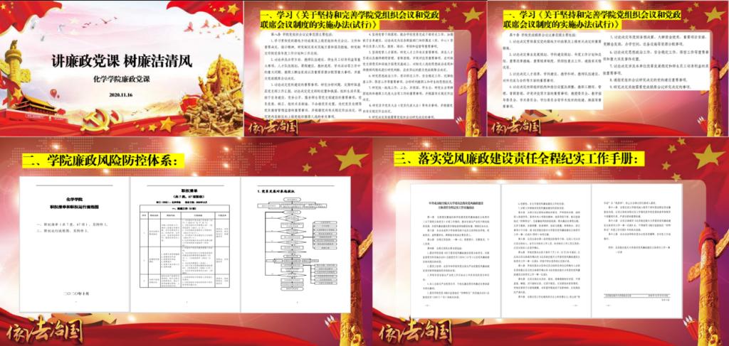 课堂上,书记带领机关党员干部共同学习了《关于坚持和完善学院党组织会议和党政联席会议制度的实施办法(试行)》,《中共JINNIAN金年会委员会落实党风廉政建设主体责任全程记实工作实施办法》以及学院廉政风险防控职权清单和流程图。深入分析了当前党风廉政建设和反腐败斗争形势,系统阐述了守纪律、讲规矩的重要性,要求全体机关领导干部和工作人员进一步对照检查,抓好自查自纠,带头执行廉洁自律准则。