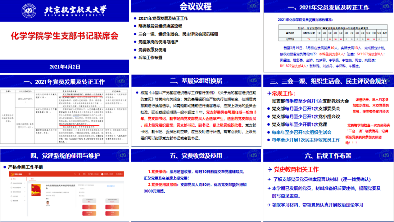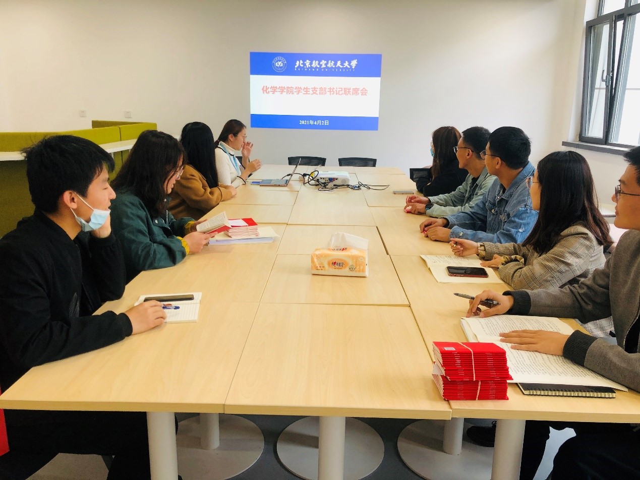 2021年4月2日,金年会官网学生党支部书记联席会暨党务工作交流会在沙河实验4-206会议室顺利召开。本次会议由专职组织员崔钰莹老师主持,金年会官网分团委副书记魏茜、各学生党支部书记参加本次会议。