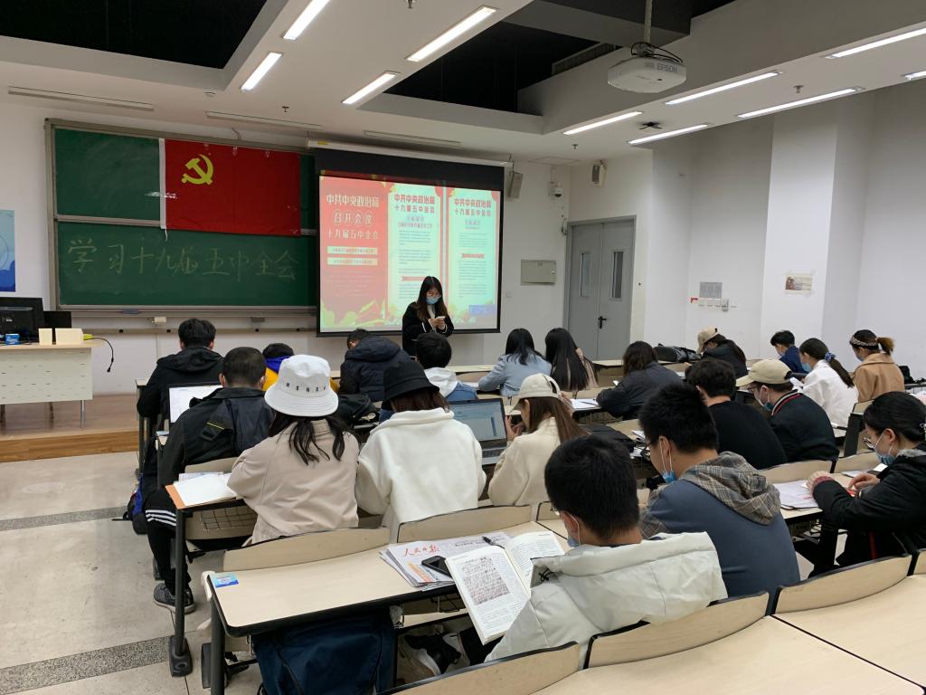为激发同学们的爱国情怀,积极响应党的号召,JINNIAN金年会SY1927党支部于2020年11月7日晚上7:00在J3-104教室开展关于十九届五中全会理论学习。出席本次活动的有SY1927党支部党员、预备党员以及积极分子。