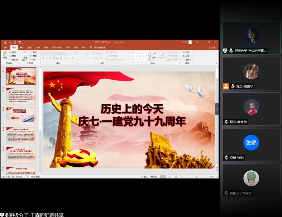 班级兼顾活动和学术发展,开展了“知识交流探讨,传承中华文化”主题交流活动,包括“品味端午,传承中华文化”主题分享活动、“学习日”读书交流会、开展“党史我知道”PPT 大赛、金年会官网“学术探讨交流会”等活动,让同学们不仅学到了学术专业知识,也丰富了精神世界和理论知识。