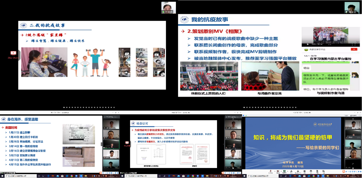 首先,在居家学习的这段日子里,我们面对着来源广泛、五花八门的疫情相关信息,要依靠自己的科学知识和理性思考冷静客观地进行辨识,做好自我防护。其次,我们可以宣传防疫知识,用自己的专业知识引导与服务他人,就像金年会官网举办的新冠疫情防控创新大赛中涌现出许多优秀的科普宣传、科研创新作品一样,我们要让自己丰富的想法转化为行动。再次,知识还是我们应对谣言与攻击的有力武器,让我们能够形成有理有据的观点来应对质疑。最后,魏老师号召我们全体同学要在做好健康防护的同时继续保持认真学习的状态,打牢专业基础,也可以利用这段时间认真思考自己的发展方向,做好未来规划。当我们回到洒满阳光的北航,将身披着更厚实的知识铠甲坚毅前行。